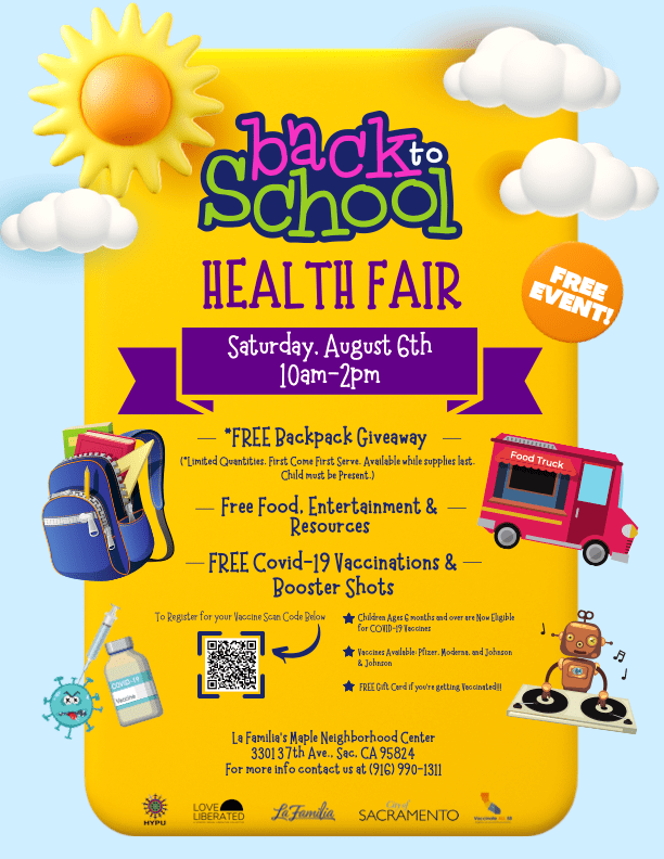 This is a FREE event and all are welcome to attend. There will be free food, entertainment, and back-to-school supplies, along with free COVID-19 vaccinations and booster shots. The participants who receive their vaccination will be eligible for a FREE gift card!