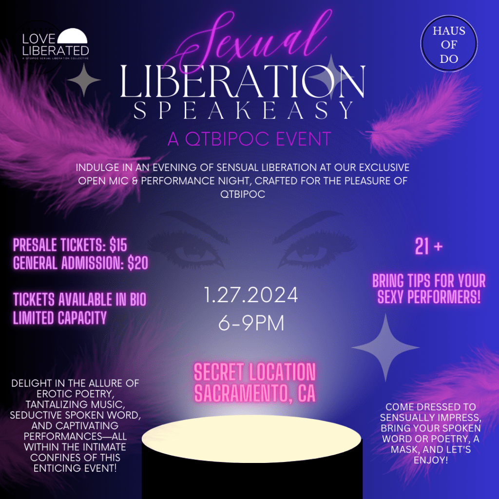 Tickets can be purchased here: https://www.eventbrite.com/e/the-sexual-liberation-speakeasy-tickets-790550657297?aff=oddtdtcreator